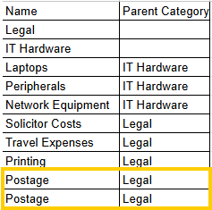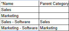 For example, if you have a parent category named "Marketing" and another named "Sales," you cannot have a subcategory named "Software" under both.