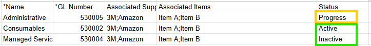 This error occurs when the text entered in the Status column is incorrect. In this column, you can only use the terms "Active" or "Inactive." Any other text will result in this error. If you leave this field blank, the system will automatically assign an Active status.