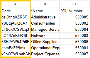 This error is specific to when you are attempting to update existing GL Accounts. If the code in your import file (typically found in Column A) does not match the code of an existing record in the system, the system cannot perform the update. You must verify the codes by exporting the GL Account CSV and reviewing Column A.