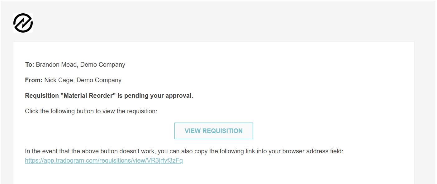 Alerts on Tradogram - The user that needs to approve will receive a notification directly on Tradogram in their alerts. On the top right of your screen, you will see a button with a bell in it. If you have a notification, the bell will have a red bubble beside it indicating the number of notifications