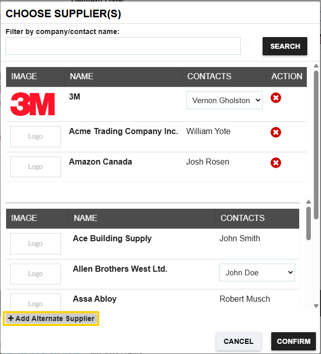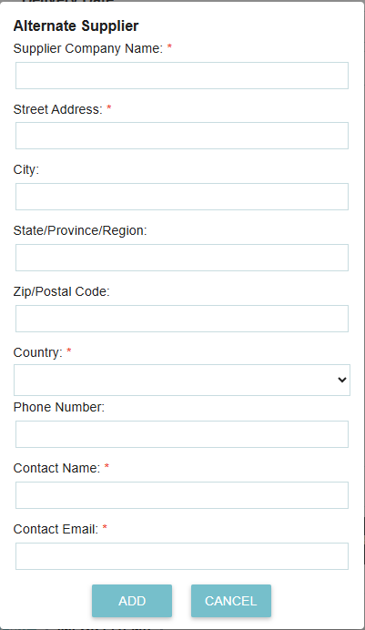 If you need to include a supplier who is not yet in your database, you can use the "ADD ALTERNATE SUPPLIER" option.