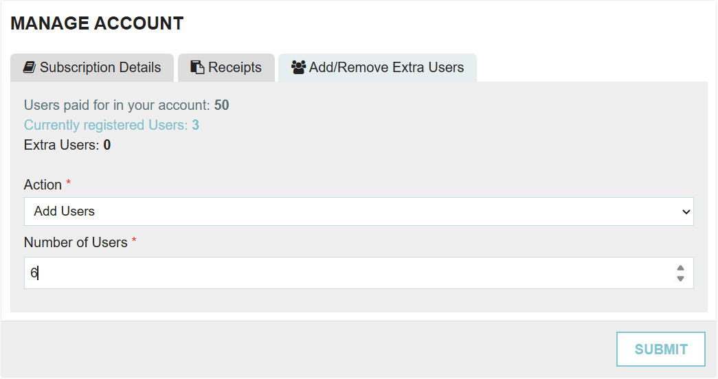 This process is used to change the total number of licenses your company is billed for.