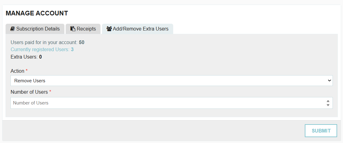 Note on Removing Users: Reducing the number of seats does not provide a refund or credit. If you need to drop below the minimum number of seats included in your base package, please contact your Customer Success Manager or email support@tradogram.com.