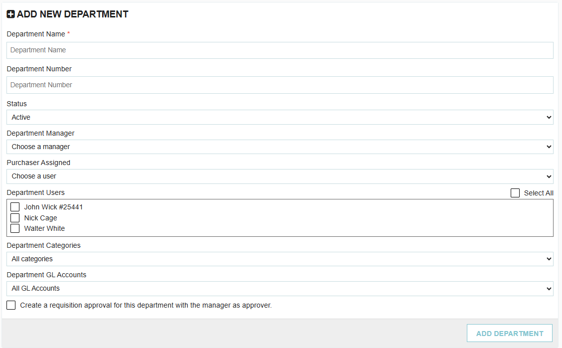 When creating a department, you can set powerful restrictions to maintain compliance and accuracy: