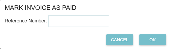 When you are ready to close out an invoice, clicking the "Mark as Paid" button will trigger a pop-up window. This window includes a dedicated field to enter the Reference Number, allowing you to record the payment details at the exact moment the transaction occurs.