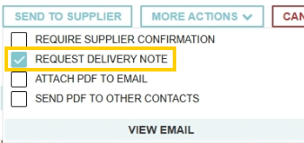 When you are ready to issue a Purchase Order (PO), you have the option to check a box to Request a Delivery Note. This tells the supplier that you expect them to provide shipping details through the platform.