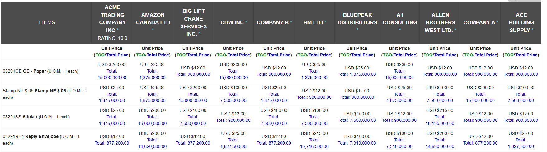 Once you have received responses, Tradogram provides specialized tools to ensure you make the right choice: