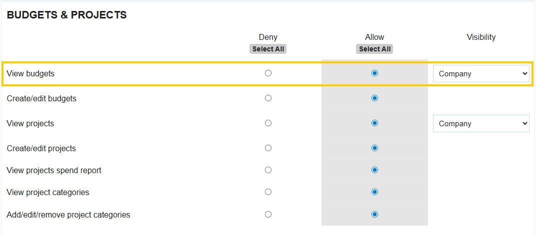 Budgets can be restricted to specific individuals. Even if a user has the general permission to view budgets, they must also be included in the specific budget's visibility settings.